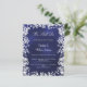 En modern inbjudan till förnyelse av eleganten. Tungblå bakgrund dekorerad med snöflingor. Den blå färg är ojämn. Anpassa och lägg till information om namn och party. Vit färgad brev.