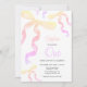 Födelsedagsinbjudan med vattenfärgscoquette-båge.
