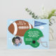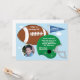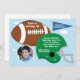 Anpassa denna inbjudan till barnets fotbollsfödelsedagsfest. Den har en fotboll, hjälm, vimpel och kan anpassas med en bild av ditt barn. Ändra bara födelsedagsfestens detaljer så är du klar! Blir en fin souvenir av ditt barns födelsedag som du kan behålla i flera år.