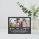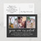 Vackert bröllopsinbjudan vykort med plats för tre av dina mest romantiska foton! Du är inbjuden och är skriven i ett vackert, vitt kalligrafiskt skript mot en mörk grått-bakgrund med ett blekt marmorutseende. Lägg också till namn, datum och tid för bröllop och på baksidan en mer information om var bröllop hålls eller din webbplats för bröllop, och allt annat som du kanske vill berätta för dina gäster.