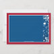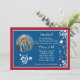 En blå invitationskarta dubbelramad med vitt och rött. Det cirkulära fönstret är utsmyckat med en västerländsk antydan till stjärnor och virvlar. Lämplig för båda könen och alla åldrar. Kortet är lätt att anpassa med din text, teckensnitt, typsnittsfärg och val av sex papperstyper.