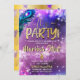 Ta era bestisar och gå till den bästa party i stan! Fira i stil med våra galaxinspirerade tropiska anananas. De här fantastiska inbjudningarna till studentfesten har en lila galaxbakgrund med ljus med dubbla rörelser överallt. En påfågelfjäder läggs till för glam från "extra". En ananas i guld finns på framsidan med gyllene text. Baksidan av POPS i inbjudan med guldananas överallt.