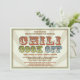 Gammaldags stil och ett roligt färgschema med limegrönt, bränt orange och blått - allt detta gör en bra inbjudan till din chilitävling.