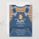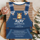 Bear Baby Shower-inbjudan med det kutaste baby-överdraget med en skön brun björn med stampilar. Unik Boys babydusch inbjudan för ett skodonsdammtema för babybabypojkar.