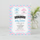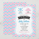 Chevron Blue & Rosa Gender Reveal bjudan, med liten prinsessa eller pirat.