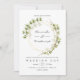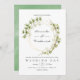 Trendig Sage grönt och vitt löv bröllopsinbjudan med guld geometriskt ram.