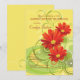 En trevlig inbjudan med tre gerbera daisy i en ljusröd färg. Den sunniga, gult bakgrunden har abstraktens löv och snurra. Lämpligt för alla lycklig firande.Kortet är enkelt att anpassa med din ordalydelse, ditt teckensnitt, ditt teckensnitt, färg och ditt val av sex papprare typer.