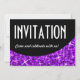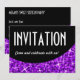 Inbjudan med en modern design med stjärnor som är spridda över en stiliserad "följesedlar" böjd form i skuggor av lila som står mot en svart bakgrund med "Bjud in" "kom och fira med oss!" skriven i vitt. Kan användas som bakgrund för din egen text, bilder och dina idéer. Det är enkelt att ändra texten med hjälp av mallen eller klicka på knappen Anpassa för att göra ytterligare ändringar. Observera att det här är en tryckt digitalbild som inte skiner eller innehåller äkta glitter eller sekvenser.