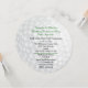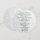 Unik rund inbjudan till firande dagen före bröllopet, med grafik som efterliknar ett vitt golfbollsmönster. Anpassa den svarta och gröna texten efter ditt golfpartys behov. Matchande RSVP-kort finns tillgängliga.