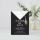 Starta din höger med trendig och snyggt, vit graderhatt och guld-tassel med en inbjudan till studentfest med svart bakgrund efter kort. Perfekt studenten inbjuder till högskoleexamen i studenten eller högskoleexamen. Fyll bara i informationen och lägg till fotot så är du redo att gå. Besök vår butik för att se detta studenten inbjudan i ett stort urval av färg i skolan