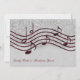 Fantastisk bröllopsinbjudning med ett fuktmönster i vintagen i blekens grått, överlagd med gnidande rött musikpersonal och anteckningar. Underbar för musik älskare!