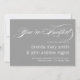 Grått-bakgrund färg, vitt skript och enkel Modern bröllopsinbjudning. Utformning av Elke Clarke©. Anpassa med informationstexten namn och bröllop.