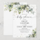 Grey Baby Shower-inbjudan. Inbjudan till Rosa Grey Baby Shower. Den här inbjudan till babyduschen för snyggt och elegant har en fantastisk handmålad vattenfärg Greenery. Sök efter matchande objekt i Blommigten Watercolor Eucalyptus Greenery_HB1 Collection.