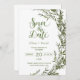 Fira kärlek med denna moderna Grey Save the Date Invation, perfekt för elopement och mikro bröllop. Designad med lush vattenfärgsblad och snyggt typografi är det perfekt för naturinspirerat par. Anpassade enkelt för ditt speciella meddelande.