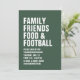Med fet vit typografi kan du enkelt anpassa den här jägerdagsinbjudan till Thanksgivingen för grönt och ange tonen för en roligt- och avslappnad-kalkondag. Texten lyder "Familjens vänner mat och fotboll", men den kan ändras till att lyda spelar ingen roll som du vill och färg är också anpassade! Underbar för Friendsgiving också! Hitta matchande tillbehör till Thanksgivingen i Lea Delaveris Design Modern Thanksgiving med fetstil.
