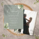 Den här eleganten budgeterar botaniskt grönt löv bröllopsinbjudan kan vara personlig med din information i chic typografi med ditt speciella foto på motsatt sida. Designad av Thisisnotme©