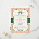 Det är en pojke! Cute, elegant grönt jordbrukstraktor, land Tema babydusch inbjudan på orange retro gingham mönster med vintagens formella utseende. Underbar för lantbrukare, nöjesbabyduschar i land. Forminbjudan för Retroparenteser.