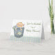 Babyduschinbjudan med söt baby i den denim fickan med gröntens hjärtbakgrund och samordning av rand gräns.