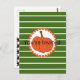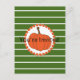 Halloween fest inbjudan med uppgifter om party i motsatt riktning. Orange pumpa på ena sidan, svarta spindlar på den andra.