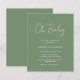 Modern grönt/oliv grönt inbjudan till babydusch med en enkel design med "Oj Baby" i en stil-skripttypografi av rustik. Denna elegant könsneutrala inbjudan med minimalistisk layout är underbar oavsett om du har en pojke eller en flicka.