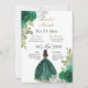 Grönt dress Quinceanera-inbjudan, invitación de quinceañera con vestido verde