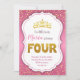 Inbjudan till guld Confetti Princess 4e födelsedag