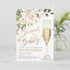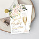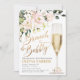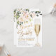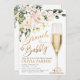 Inbjudningskort för möhippan har blommor av rosa i guld, champagneglas och glansigt tryck. Den här designen är perfekt för någon som har en brunchdusch i möhippan.