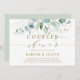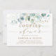 Den här par-duschinbjudan innehåller färgade vattenfärger eukalyptus, botaniska gröntar och guld glitter löv med guld-skript.