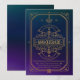 En vacker inbjudan med lila och marin bakgrund med ornat guld ram. Små detaljer som en guld-ljuskran och maskeradmasker ingår i konstruktionen. Denna inbjudan är designad för högskoleprogram, men ordalydelsen kan anpassas för att passa alla formella evenemang.