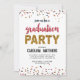 Faux glitter glamor-studentfest inbjudan. Guld, rosa och svart glitter-konfekti (tryckt fotoeffekt) på vit bakgrund