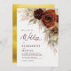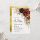 Den här bröllopsinbjudan innehåller rostolja som är målad burgundisk, jordad, tonad höstblomma över grönt och pampasgräs med en elegant guld blad bakgrund.