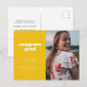 Meddela din stora prestation i student med detta enkla men snyggt studenten meddelande och inbjudan. Den har ord "gratulerar grad" i ett vitt stil-textteckensnitt på gultens bakgrund samt utrymme för ett foto på framsidan. Använda baksidan av vykortet om du vill ha mer information om firande för student.