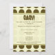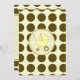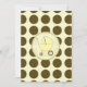 En inbjudan som innehåller en brun polka-punktbakgrund över varmt beige med ljus gult trim. Anpassa den bruna texten med information om händelsen. På motsatt sida finns en solid polka-punkt med en gult baby-vagn inuti en passande cirkelformad ram.