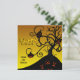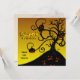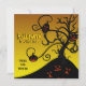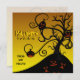 Ett fläckigt tittar träd-silhuett och hängande Jack o’ Lanternor med skrämmande ansikte, på en glödande brunt gult av orange. Matchningsram: