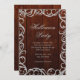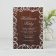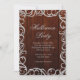 Vintagen Halloween-inbjudan med grått och brun accentueras med blomning på en illustrerad bakgrund av trä.