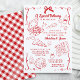 Gratulerar till att din lilla vän kommer att komma med vår perfekterna "Speciell Delivery"-pizza-inbjudan, för en pizzatemedad babydusch. Med charmerande handdragna doodlar och en pulserande röd palett i färg, fångar denna inbjudan det italienska cuisineets glädje och upphetsning på ett förtjusande sätt. Inbjudan dina vänner och din familj att gå med i roligten när du samlas för en minnesvärd firande fylld med kärlek, skratt och, naturligtvis, utsökt pizza!