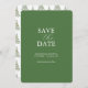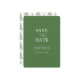 Meddela din förlovning med det här enkla inbjudningskortet för bröllop spara datum som inte är fotot. Den har en blandning av klassisk och skripttypografi i vitt över en solid grönt bakgrund. Kortet återgår till ett botaniskt träd mönster med vattenfärg. Använda mallen fält att anpassa med ditt namn och bröllop-datum. Anpassa till och med färg till kostym till det bröllop-tema du vill ha. Välj mellan en mängd lagrar med kvalitetskort. Min favorit för det här är pärlshimmer. En minimidesign för bröllop och förlovning under helgdagarna för julen. Om du vill se matchande bröllop-papperssvit med bröllop-trender går du till www.zazzle.com/dotellabelle