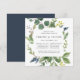 Vår inbjudan till Eucalyptus Grove-rehearsal-middag i ett unikt kvadratiskt format ramar din ceremoni- och middagsinformation med vattenfärgen eucalyptus foliage, grönt löv och små marinblå knoppar. Ett modernt men organiskt val för mögel- och vinterrepetitionsmiddagar med färska botaniska gröntar och elegant.