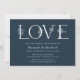 Inbjudan till förlovningsfest av elegantens blommigt i marinblått "KÄRLEK" med halvvita bokstäver som är förskönade med små blommor. Anpassa med din förlovning firande-information under.