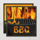 En grafik som illustrerar ett flammigt grill av konstnären/designern Charmaine Paulson på en BBQ-inbjudan. Inbjudan innehåller textmallar för din anpassning. ©2013charmainepaulson