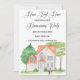 Flytta in i ett nytt hem? fira med vänner och familj med detta enkla teckning av en familj på sitt nya hem.