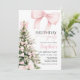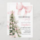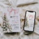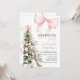 Vinterdagsinbjudan med vattenfärgad rosa coquette-båge.