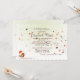 En förtjusande inbjudan med flygande höstlöv och en liten fågel som håller i ett orange paraply. Vill du spara pengar? Skriv ut på det vanliga fyrkantiga hörnpappret.