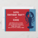 Blå hummer födelsedagsinbjudan på kraftpapper. Mörkblå hummerbild på höger sida av horisontellt platt papper, med många pappersalternativ och uppgraderingar. En röd panel innehåller tryckt text i vitt (ser tan ut på kraftpapper) och marinblått. Denna design är perfekt för att fira hans födelsedag med en stor skaldjursfest! Välj också den omedelbara nedladdningen om det föredras.