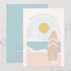 Den här söta och moderna surfan, den där strandinbjudan har en yfboard med träskrester på stranden med spridda snäckor. På havsblåa baksidan finns närmare information om party.