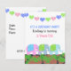 Fira ditt barns födelsedag med dessa söta födelsedagsinbjudningar som innehåller tre indiska elefanter från baby med filtar och huvud delara. En sträng med färgadens hjärtan accentuerar överkanten. Anpassa med all information om party efter behov.