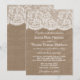 Samlingen av snöre och brännlappar är en fantastisk utformning som har en vacker, rustik, överlappande bakgrund med en romantisk vintage vit snöre-effektstrim. Dessa inbjudningar kan vara en personlig för ert särskilda tillfälle och skulle göra perfekten till ett tillkännagivande för varje rustiskt bröllop, möhippa, förlovningsfest, födelsedagsfest och mycket, mycket mer. *Observera att Zazzle endast säljer utskrivna inbjudningar så dessa inbjudningar har ingen riktig överlappning eller snöre-material.