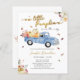 Den "Little Pumpkin Blue Lastbil Baby Shower-inbjudan", designad av CaMiDesigns, illustrerar på ett förträffligt och charmerande sätt en vintage blå lastbil med en söt liten pumpa, perfekt för att fira en fall- eller stråltemadrusch. Utformningen är varm och glad, skapar den ett inbjudande sätt att de glatta nyheterna med vänner och familj. Om du vill ha beställningar, frakt, produktinformation och ytterligare hjälp kontaktar du Zazzle Customer Care direkt.
