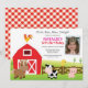 Inbjudan till lantbrukare med anpassningsbar med foto. Land Farm Animal Barnyard. Barn Cow Gris Horse Chicken. Boy eller Girl Bday. Första födelsedag. Första andra och tredje fjärde 7:e, åttonde, nionde, elfte, elfte 12:e, 13:e, 15:e, alla åldrar. Röd och vit kontrollerad bakgrund. Utskrivbar digital teknik. Om du vill göra ytterligare anpassningar klickar du på knappen "Anpassa" och användor verktyg som är utformat för att ändra mallen.