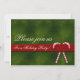 Inbjudan till julfest med mörk grönt och röd bakgrund med candy cane-accenter.